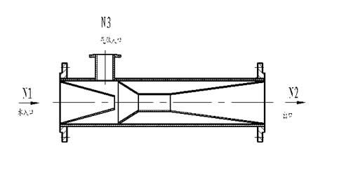 | 喷射混合器主要结构由接受室、喷嘴、混合室、扩散室组成。 流体通过大口径水(气)力喷头进入气(水)混合腔,同时在气(水)混合腔内产生强大的负压,将大量气体吸入气(水)中。在强大负压和高速射流的共同作用下,将吸入气(水)中的空气剪切、粉碎、乳化。强烈的紊流又改变了气液双膜之间的气压梯度和浓度梯度,同时负压和强烈剪切及搅拌促使双膜界面高频振荡,使气泡直径大幅度减小,气泡数目急剧增加,增大了气泡的比表面积、极大降低了传质阻力。 最终气体在高压下迅速融入水体中,然后气水混合体迅速脱离气水混合腔进入导流筒,气水混合体在经过导流筒过程中完成气水的第一次传质。导流筒与池底布水器连接,气水混合体通过布水器最终进入污水生物处理系统,完成污水处理系统的充氧(气水的第二次传质)、搅拌过程。 材质由不锈钢、碳钢、PVC、PP等;吸气量和设备安装高度及安装方式有关,一般为垂直高位安装,有利于增加吸气量。 |